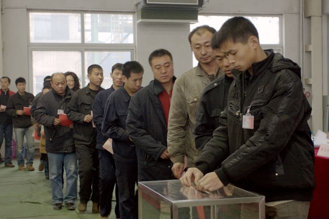 工會會員代表投下莊重的一票